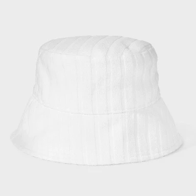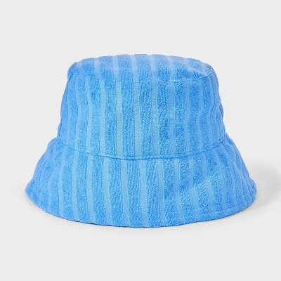 Bring a fun update to your sunny weather look with this Poly Jacquard Terry Bucket Hat from Shade & Shore™. Designed in a classic silhouette featuring a curved crown and a slanted brim, this bucket hat help keep the direct sun out of your eyes. Made from midweight fabric with soft lining for comfortable wear, it features a woven striped jacquard-knit outer in a solid hue, making it a great complement to a variety of casual ensembles.