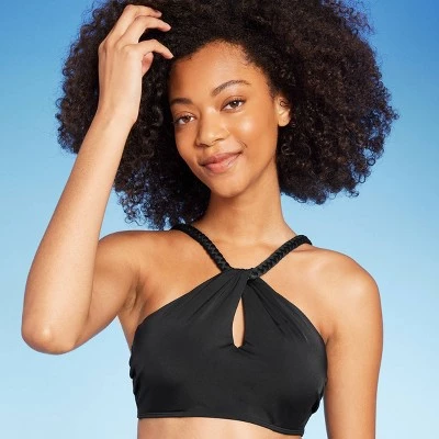 Flaunt your chic, unique style at the beach or pool wearing this High-Neck Braided Strap Bikini Top from Shade & Shore™. Made from soft fabric with spandex and a full lining, this high-neck bandeau-style bikini top offers flexible comfort in and out of the water. The underwire and molded cups provide plenty of support, and adjustable braided straps make it easy to find the perfect fit.