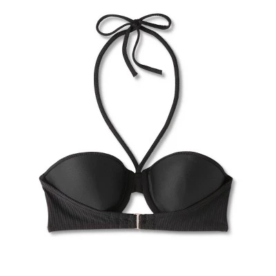 Make a stylish statement at the beach or pool in this Lightly Lined Ribbed Halter Bikini Top from Shade & Shore™. Designed in a solid color, this halter bikini top features an allover ribbed construction for a flattering silhouette that looks great with a range of bikini bottoms. The lightly lined molded cups offer light lift and structure, while behind the neck tie and back hook-and-loop fastener makes for a secure fit. Mix and match this halter bikini top with your favorite high-waisted or strappy swim bottom for the perfect summer look.