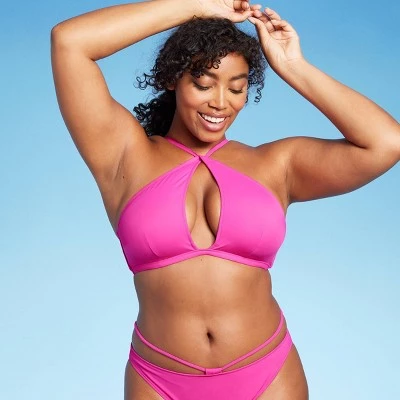 You’re sure to look on-trend while soaking up some much needed vitamin D in the Longline Keyhole Halter Bikini Top from Shade & Shore™. The triangle swim top is made from soft, stretchy fabric with lightweight lining that offers you flexible movement, whether you are swimming or lounging at the beach or poolside. The keyhole halter neckline lends a chic look you’ll love, while the back hook-and-loop closure creates a custom fit. Plus, the removable padding with underwire offers light lift and structure. Mix and match with a variety of bottoms for different swimwear options.