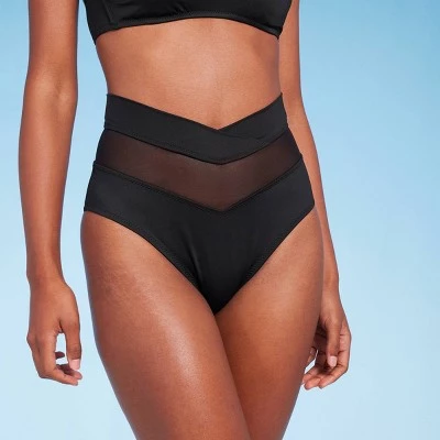 Take on the beach or pool in standout style with this Mesh High-Waist Bikini Bottom from Shade & Shore™. Made from soft fabric with spandex and full lining, this black bikini bottom will help you move in flexible comfort both in and out of the water. Easy to pair with a wide variety of swim tops, it features a high-waist design with two opaque bands and mesh in between.