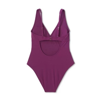 Flaunt your chic swim look with this Ribbed Plunge Twist-Front One Piece Swimsuit from Shade & Shore™. This ribbed-textured swimsuit has a classic one-piece silhouette. Made from stretchy fabric for ease of movement, it features a plunge V-neck, a deep U back and a twisted-front detail at the front for a touch of flattering style. The removable cups offer customizable coverage, while the adjustable shoulder straps along with a back hook fastener give you a customized secure fit. Complete your look with a sarong or a cover-up and accessorize with a pair of sunglasses and flip-flops.