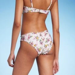 This Ruffle Cheeky Bikini Bottom from Shade & Shore™ is adorned with a ditsy floral print for extra charm. It features a low-rise, hipster silhouette with soft ruching and ruffles on the edging for a sweet finish. The stretchy fabric with elastic at the leg openings provides comfortable movement, and the opaque construction offers coverage for confident wear. Pair them with a coordinating bikini top to complete your swim style.