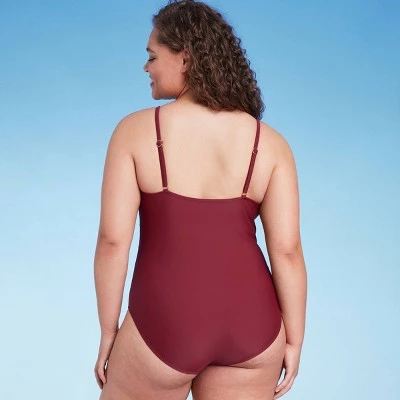 - Burgundy underwire balconette one-piece swimsuit with full coverage