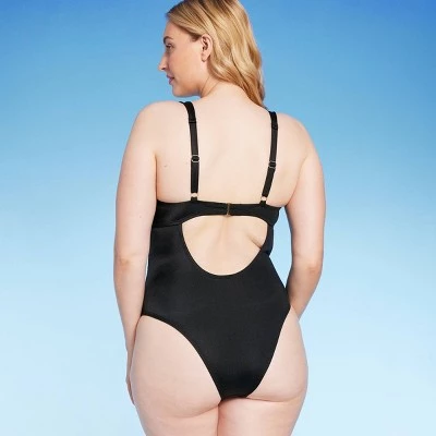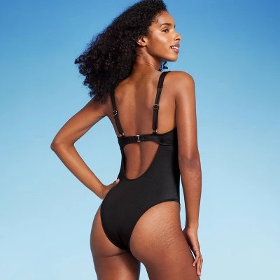 Give your swim wardrobe a stylish update with this Shirred Cup Underwire High-Leg One-Piece Swimsuit from Shade & Shore™. Made from soft fabric with spandex and full lining, this extra-cheeky one-piece swimsuit offers stretchy comfort in and out of the water. Removable padding provides customizable coverage, while the underwire construction gives you just the right amount of support. Designed with a high leg with elastic at the leg openings, this one-piece swimsuit also features a keyhole cutout between the cups for an extra touch of style.