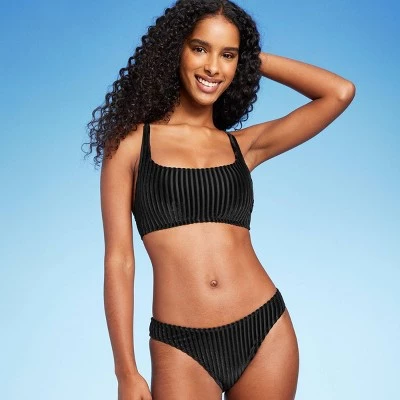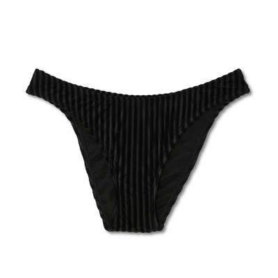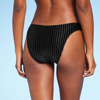 Show off your unique style at the beach or pool with this Velour Ribbed Cheeky Bikini Bottom from Shade & Shore™. Made from soft velour fabric with spandex and a full lining, it offers stretchy comfort and confident coverage both in and out of the water. Allover ribbed texture adds extra visual interest, and the black hue is easy to pair with a variety of solid and patterned swim tops.